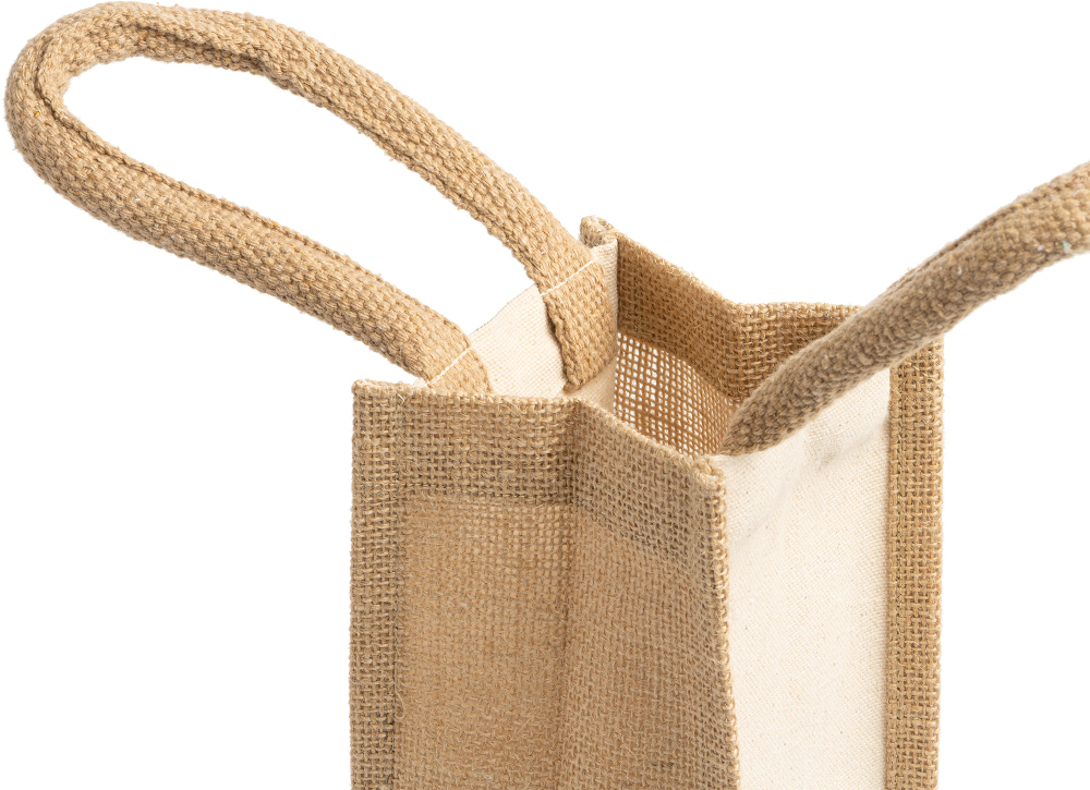 Sac laminé en jute et coton avec anses renforcées, parfait pour les bouteilles :