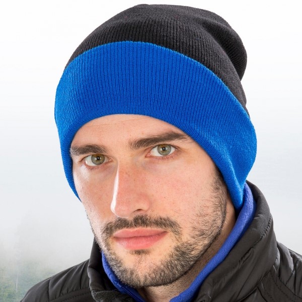 Bonnet en polyester recyclé doux avec rabat contrasté, double épaisseur, 340 g/m²