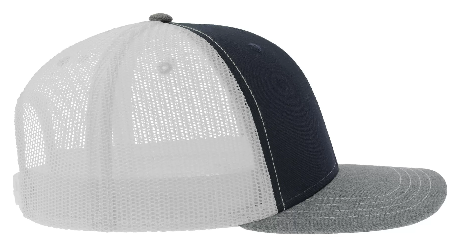 Casquette trucker 6 panneaux, coutures contrastées, en coton et polyester, 280 g/m²