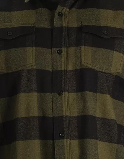 Découvrez notre chemise flanelle à carreaux pour femme, en coton, avec une silhouette féminine et des détails pratiques comme des poches et des manches retroussées.