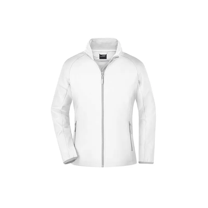 Veste softshell femme Promo en 100% polyester 280 g/m². Version économique du softshell. Coupe-vent et déperlante. Col montant. Poches zippées. Coupe légèrement cintrée.