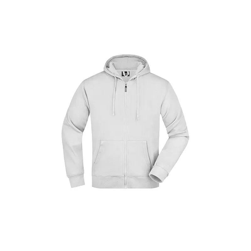 Veste homme à capuche Hooded Jacket en 80% coton peigné ring-spun et 20% polyester, molleton 300 g/m². Capuche double épaisseur avec cordon. Zip intégral. Poches latérales zippées. Construction qualité 3 fils indéformable. Certifié OEKO-TEX Standard 100.