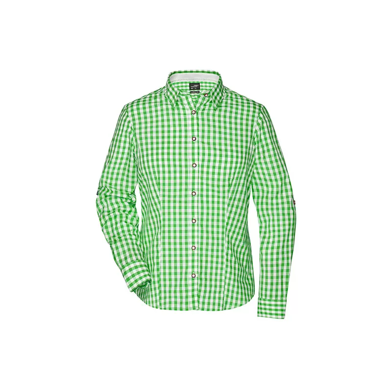Chemisier femme Traditional Shirt en 100% coton léger 100 g/m². Style traditionnel bavarois avec détails folkloriques. Esprit Edelweiss et Oktoberfest. Coupe légèrement cintrée.