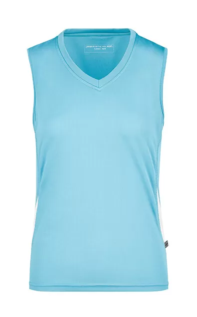 Débardeur femme de course col V, bicolore, léger et respirant en polyester, 140 g/m²