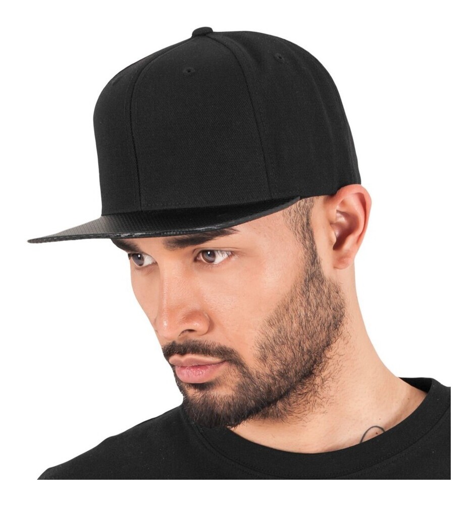 Casquette snapback 6 panneaux, visière imitation carbone :