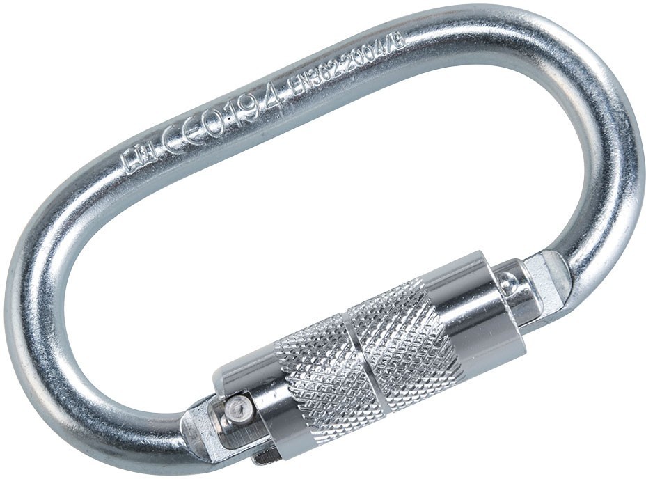 • Info - Brochure:Ce mousqueton à verrouillage par rotation comporte une ouverture de porte de 20 mm pour la fixation d’un dispositif de connexion tel qu’il doit arrêter la lanière à un point d’ancrage.